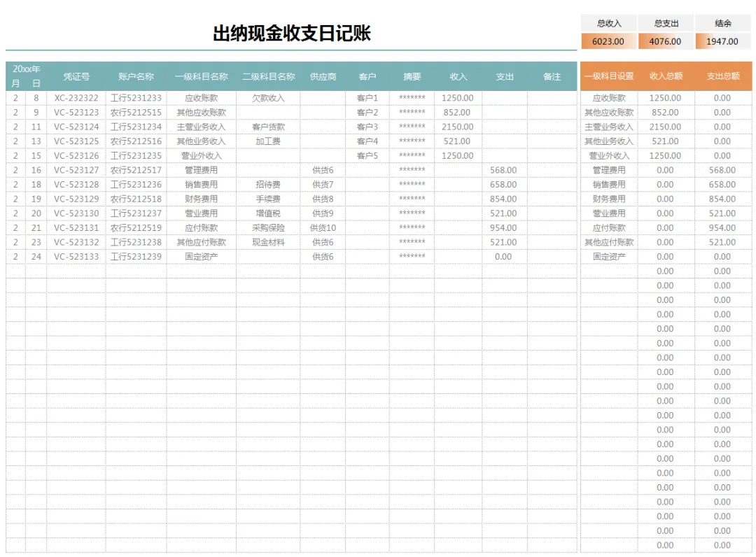不管是刚接手出纳工作的新手,还是已经做了一段时间的老出纳,台账表格都是每天要打交道的东西。手工做表不仅耗时,还容易出错,有时候一个格式调整就要花半天时间。为了帮大家减轻工作负担,今天专门整理了52套出纳专用台账表格模板,涵盖收付款台账、对账台账、备用金台账等所有常用类型,格式已经调好,不用修改,直接填写数据就能用,新手也能快速上手,再也不用为做台账犯愁。