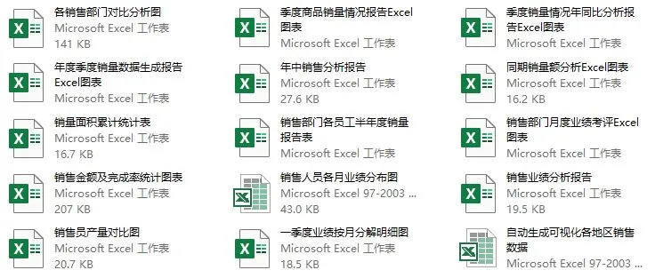 财务分析报告表、企业日常管理表、人力资料管理表、日常办公报表、生产数据分析表、销售业绩表等等。有了这套资源包,你也可以轻松做出专业的Excel报表,让领导对你刮目相看。预览如下: