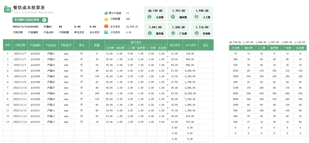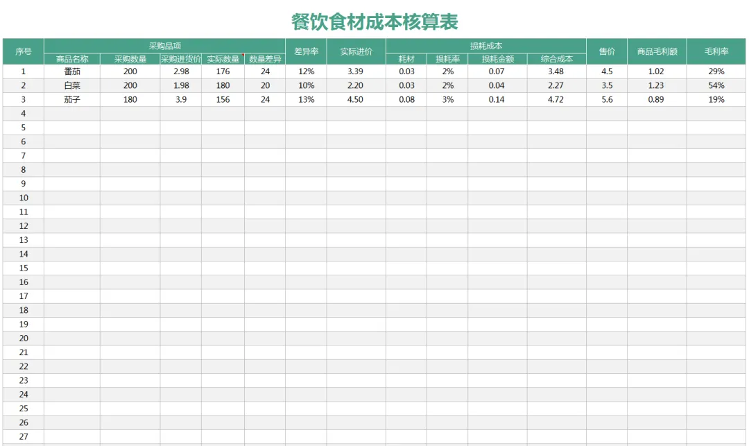 告别手工算成本!餐饮业成本核算分析表格模板,帮你省大半时间