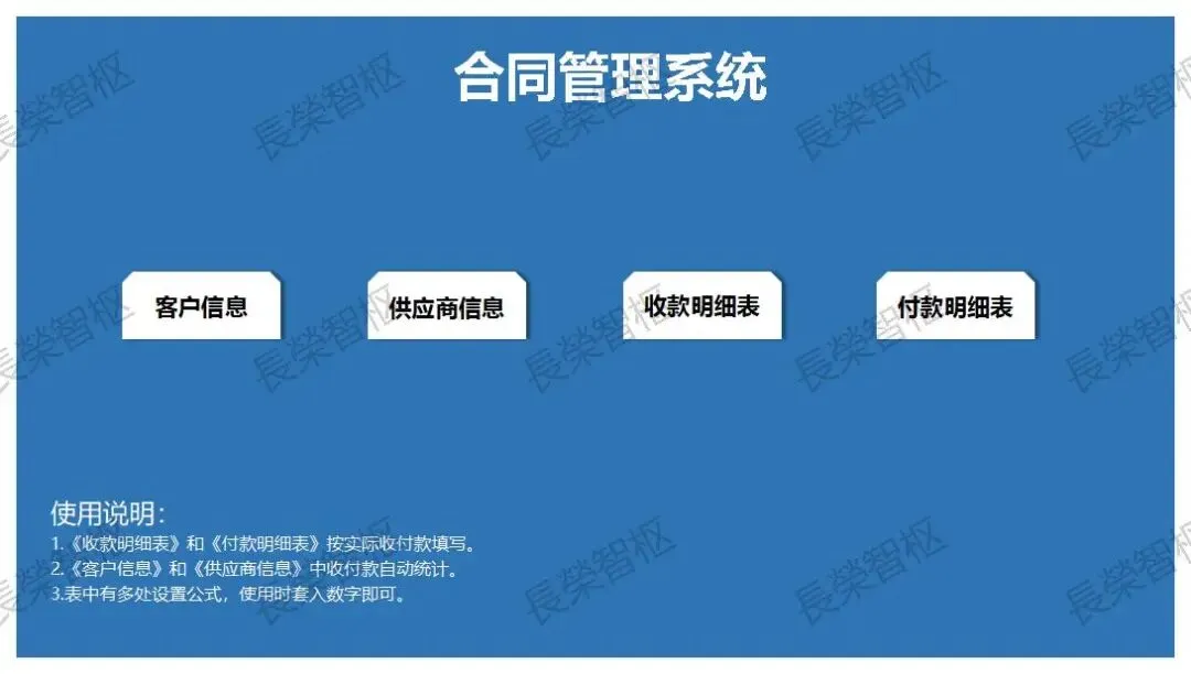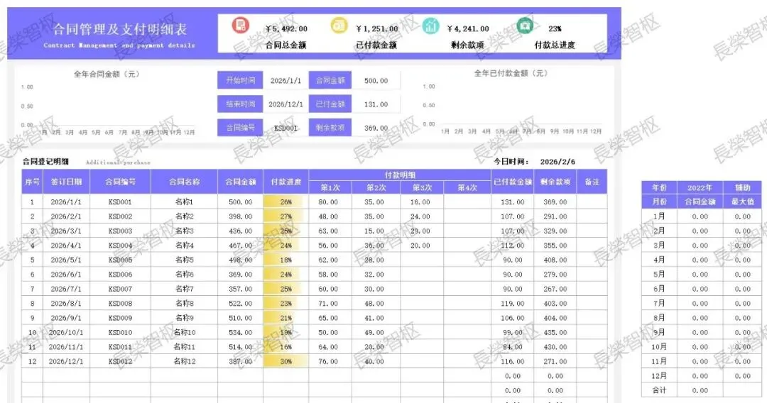 【Excel模板】合同管理系统合同管理台账登记应收付款管理支付明细可编辑模板