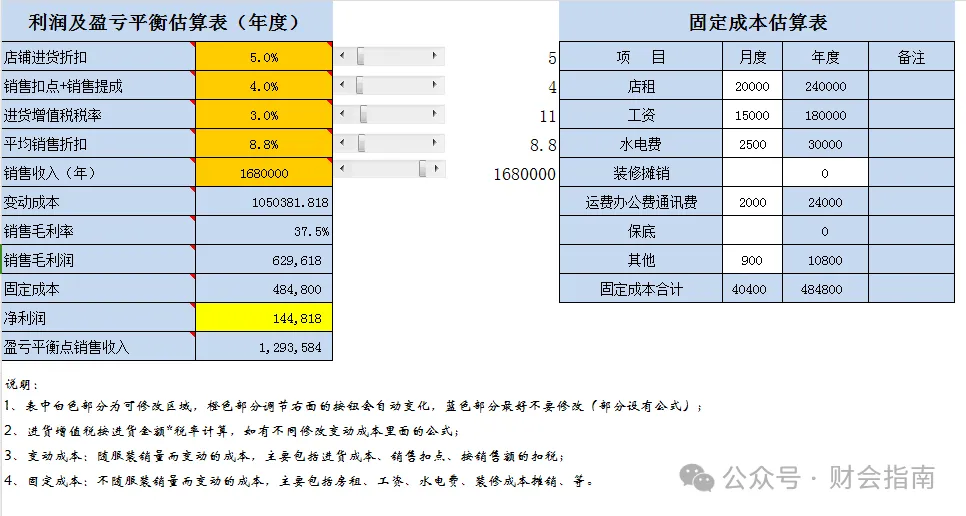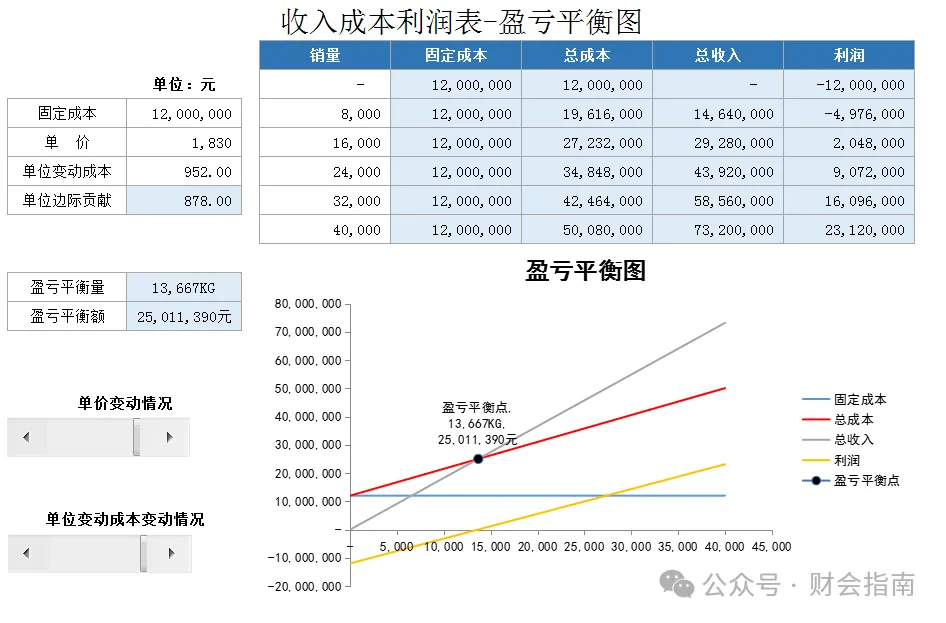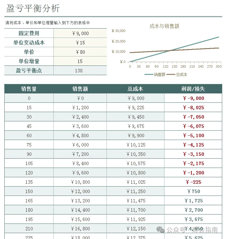 财务分析常用的盈亏平衡分析模板,附全自动Excel盈亏平横点分析模型,财务一键套用