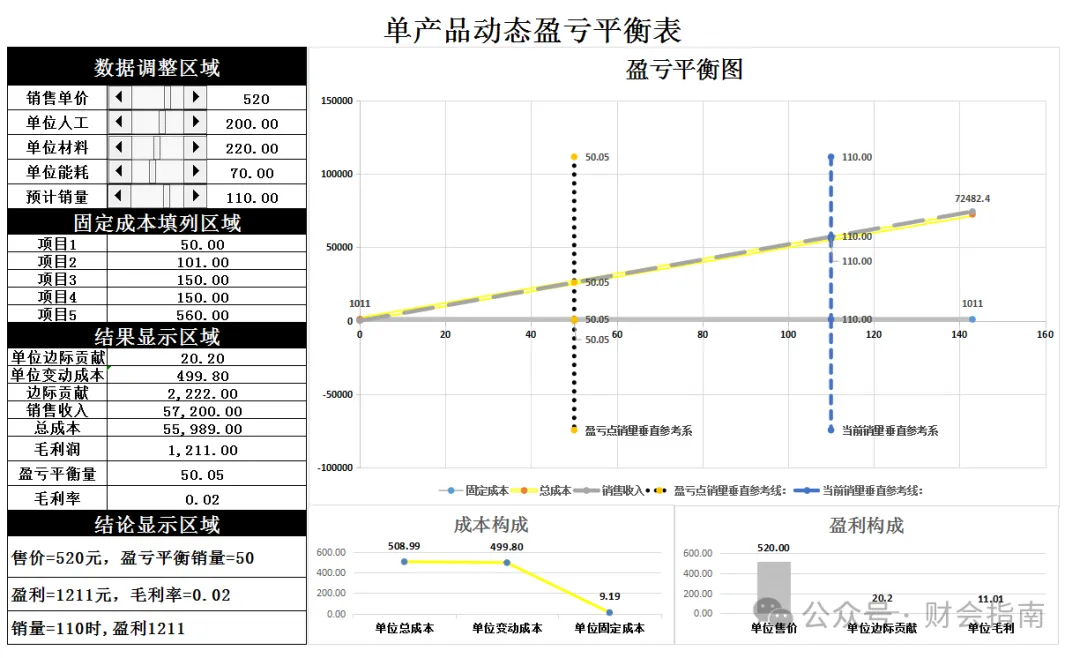 财务分析常用的盈亏平衡分析模板,附全自动Excel盈亏平横点分析模型,财务一键套用!