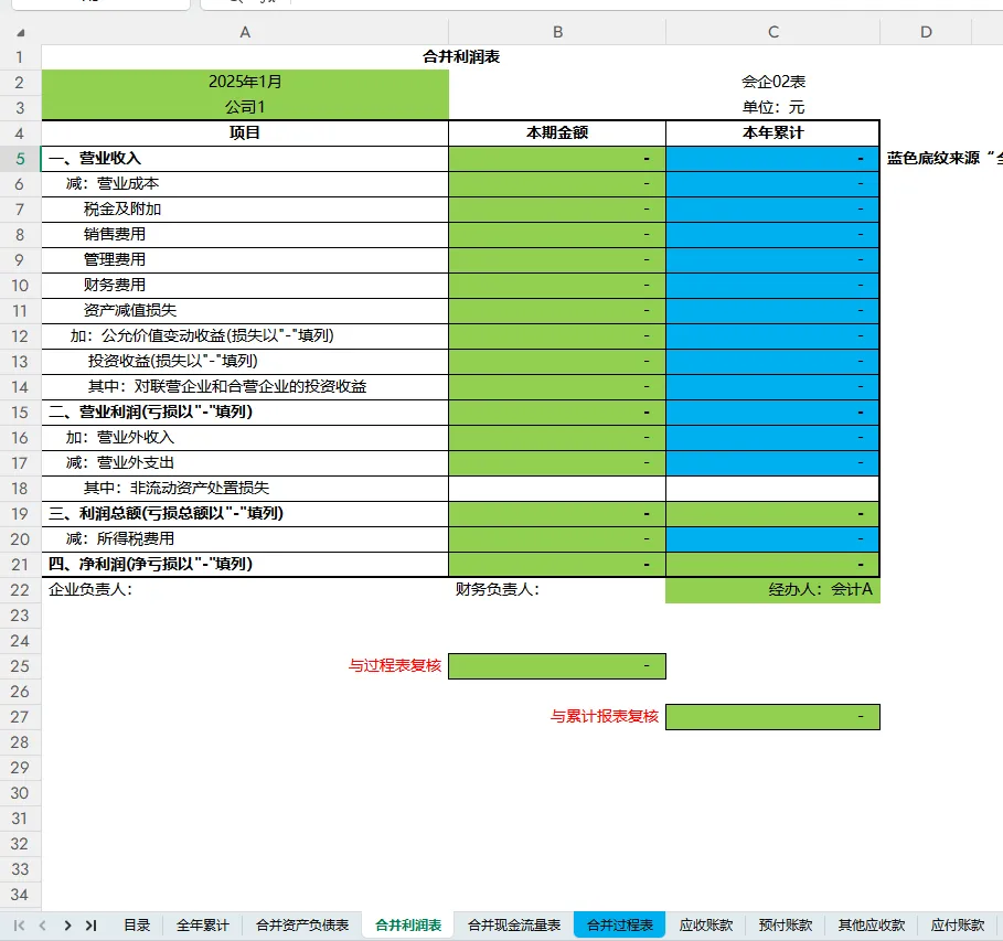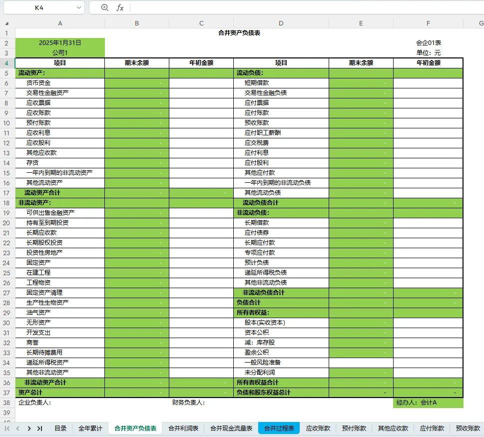 合并财务报表模板