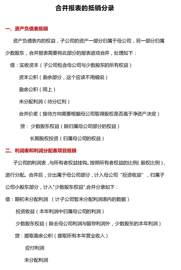 合并财务报表抵消和调整分录