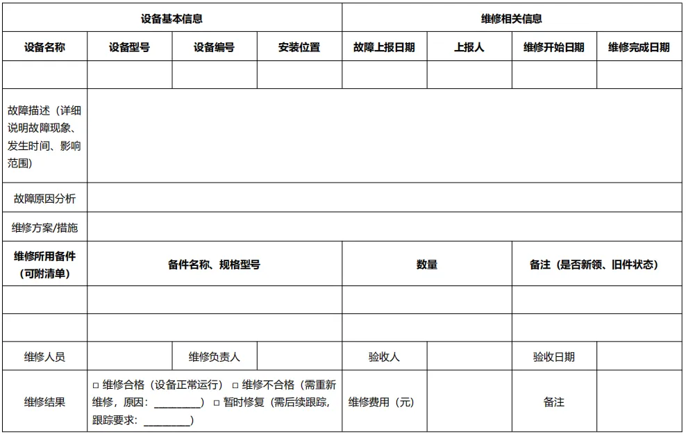 很多设备管理员在日常工作中,常常陷入“无规范模板可用”“表格填写混乱”“关键信息遗漏”的困境,既浪费时间精力,也不利于后续追溯和管理优化。