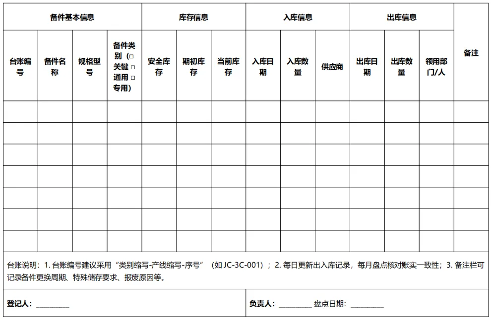3、《备件管理台账》