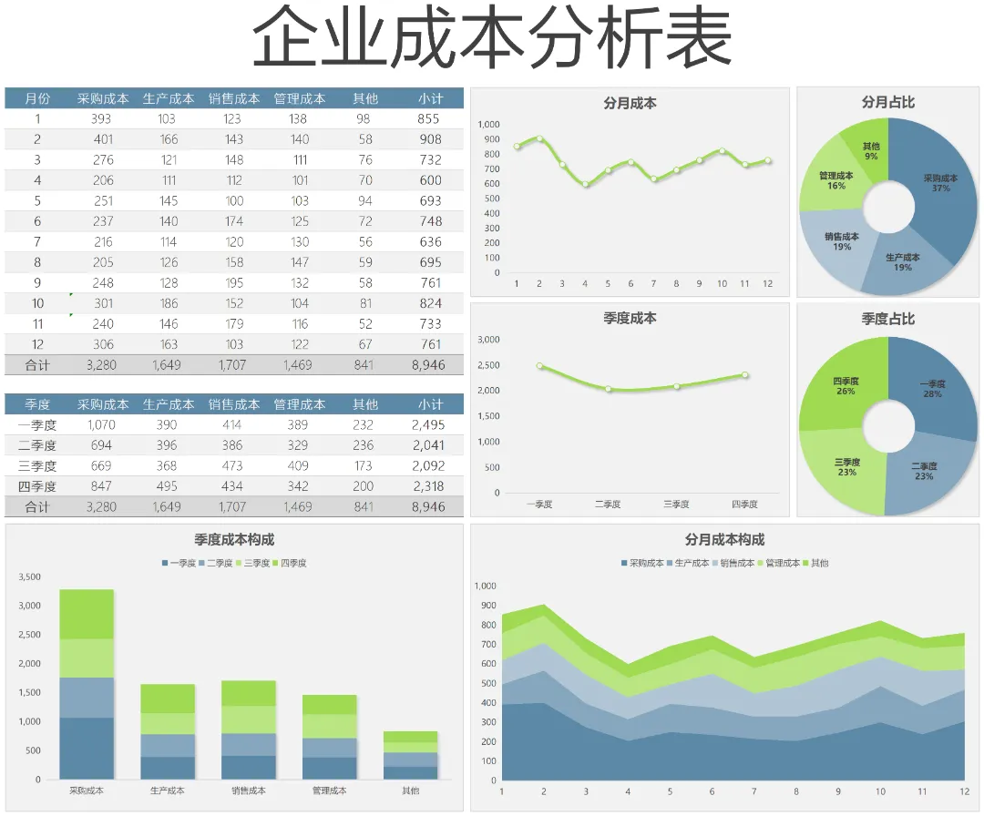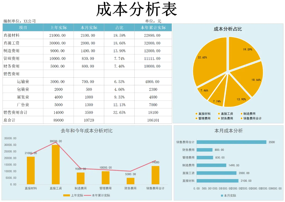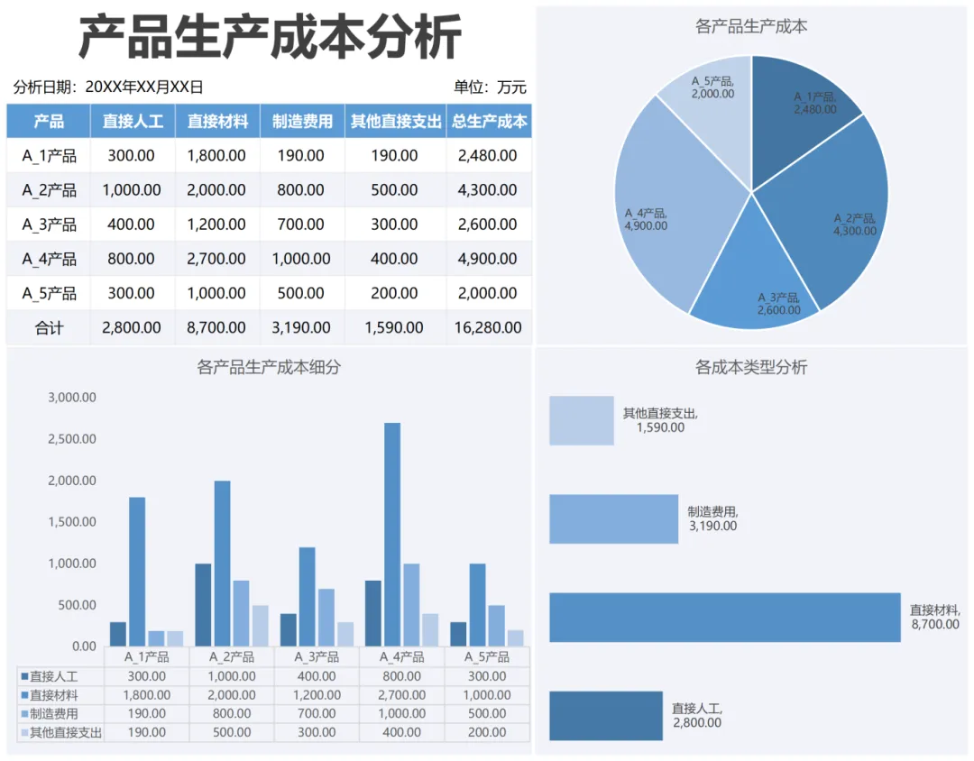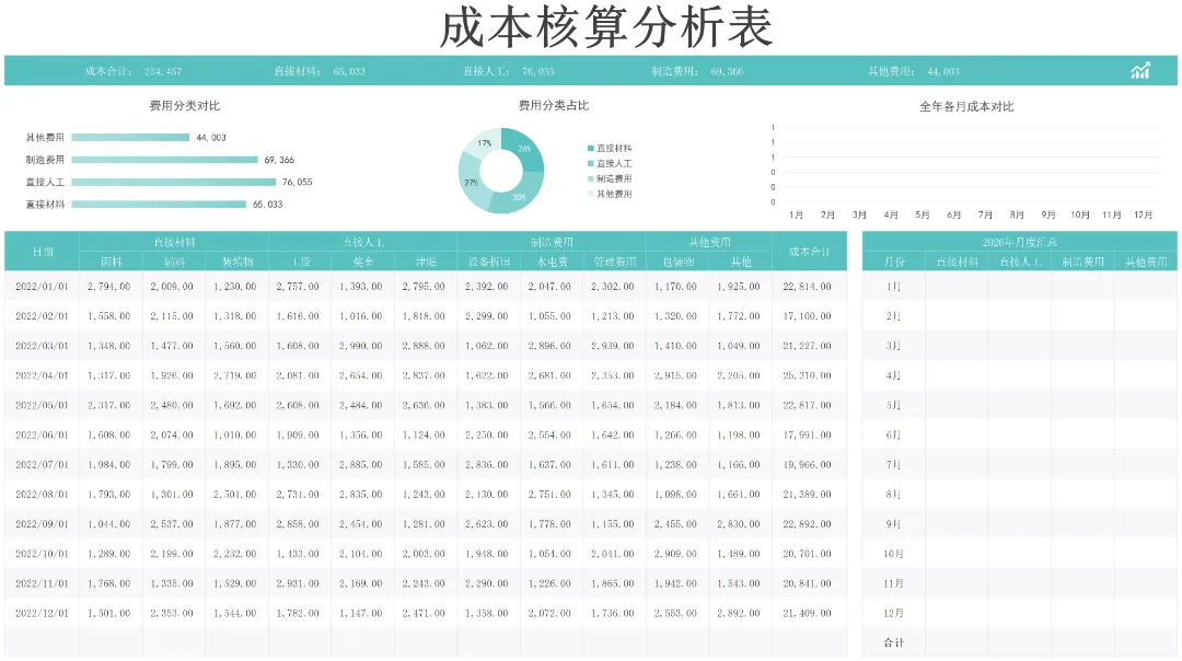 每次做成本分析都要熬夜改公式,数据一多就容易出错,别担心,下面小编给大家整理了24套成本分析表格模板,自带公式,录入数据自动生成财务报表分析图表,简单高效,输入原材料采购金额后,系统会自动分摊至各产品,并生成成本结构饼图,让每一分钱都花在刀刃上!