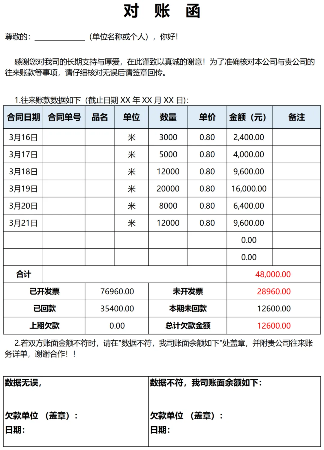 马上就要上班的财务人员,是不是要向客户发送对账单、回款记录、供应商催款函等回款对账表格,让客户确认已付款项及未付款项,明确双方债权债务关系,避免后续纠纷。