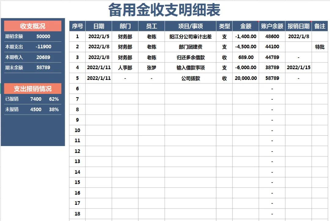很多小公司、门店和部门,都在为备用金记录发愁:谁借了多少、什么时候还、还剩多少,记在本子上容易丢,记在手机里又不规范。其实一份规范又简单的备用金表格,就能解决大部分麻烦。这篇文章给你直接送上现成模板,格式清晰、操作简单,不管是财务还是行政,都能轻松上手。