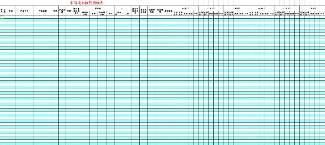 通用成本核算表:
