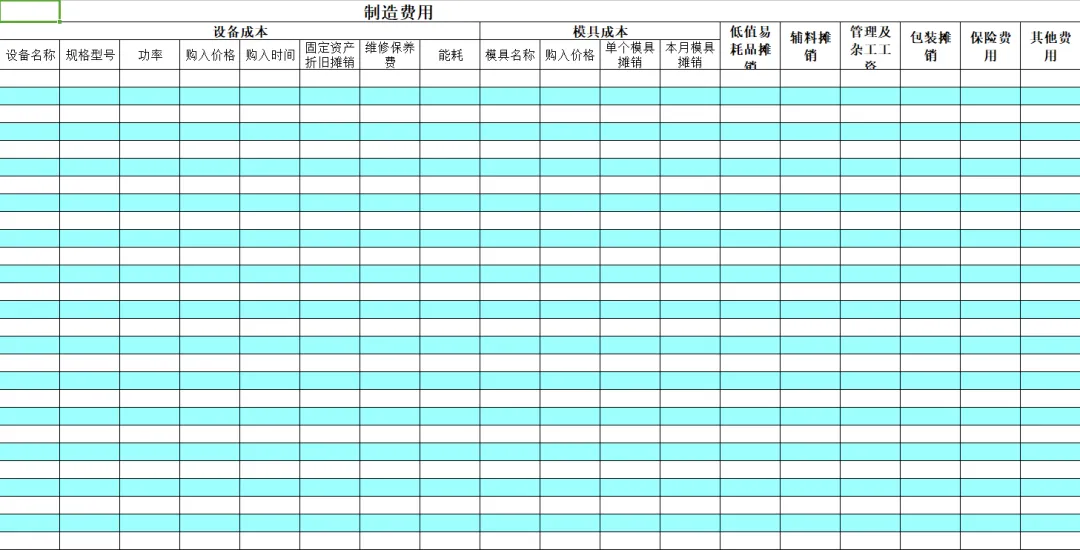 财务成本核算表格模板.xls( 2021全新版)