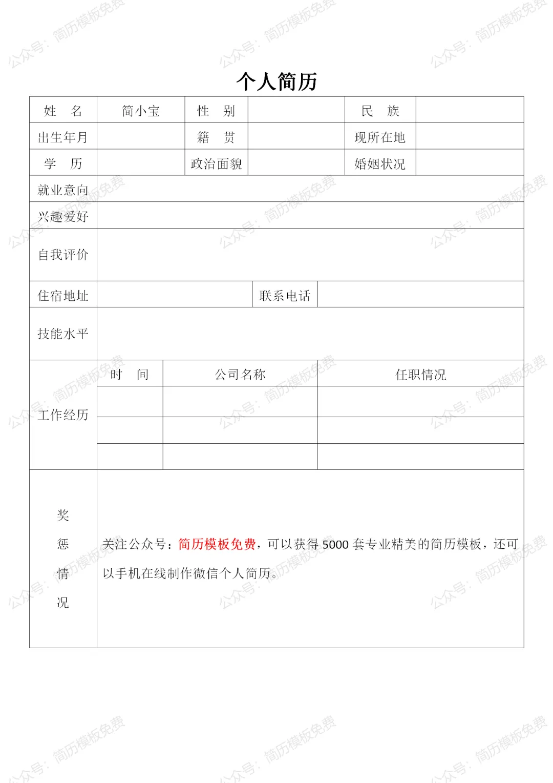 个人简历模板空白表格