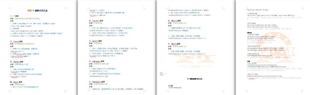 这套资料,全面介绍500个函数,从函数公式格式到应用实例清楚呈现,还把各个函数按应用范围分门别类,让大家直接找到相应用途的函数。