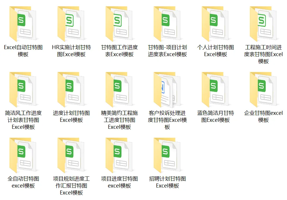 以上就是本期《16份工作计划甘特图Excel模板》的大概情况啦~