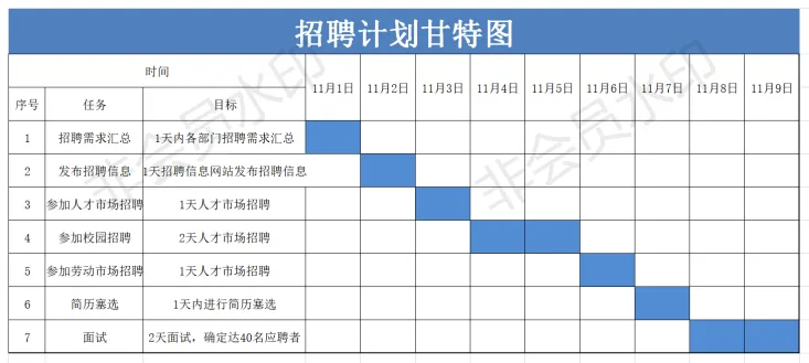 其通过条状图来显示项目进度,和其他时间相关的系统进展的内在关系随着时间进展的情况。是优秀的HR必备工具之一!