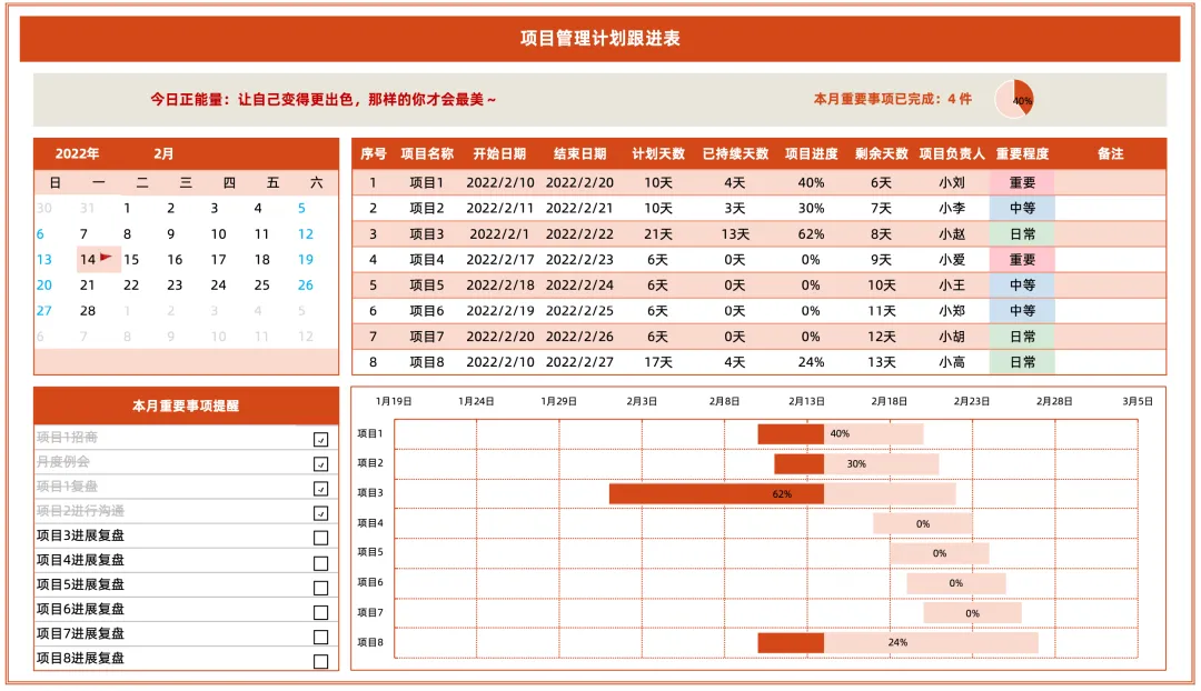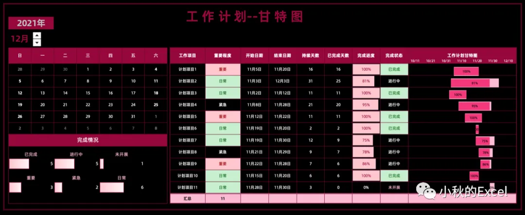 「带万年历的工作计划甘特图」