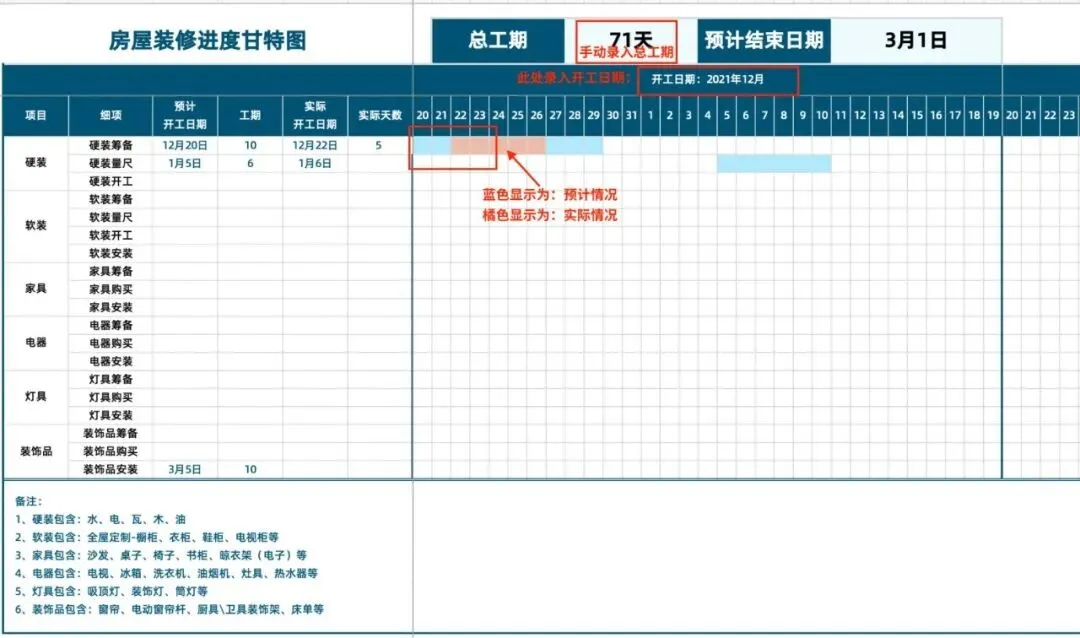 「房屋装修进度甘特图」