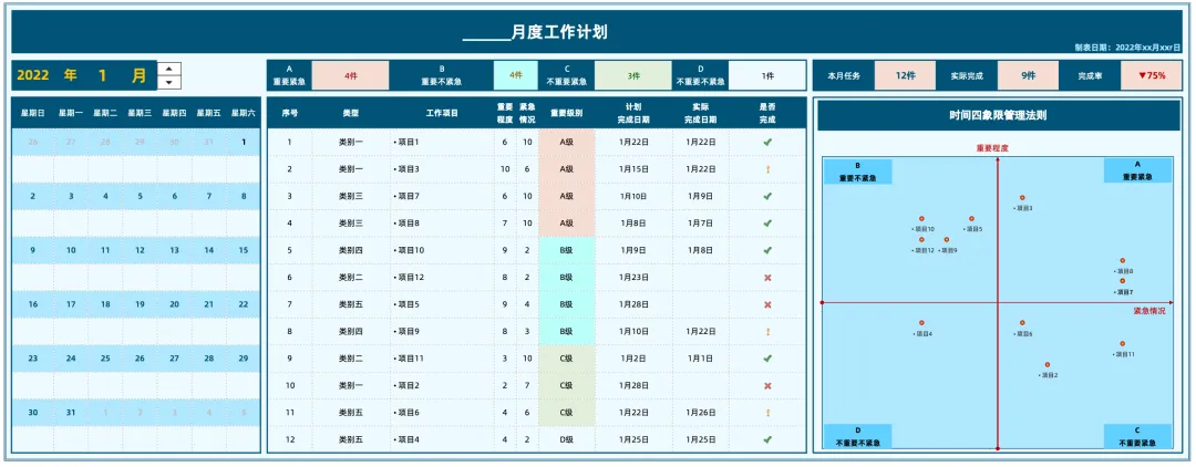 「月工作任务计划与实施分析看板」