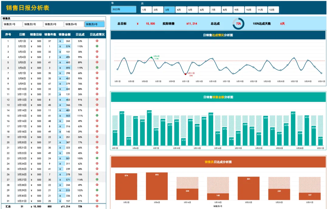 「销售日报动态分析图表」