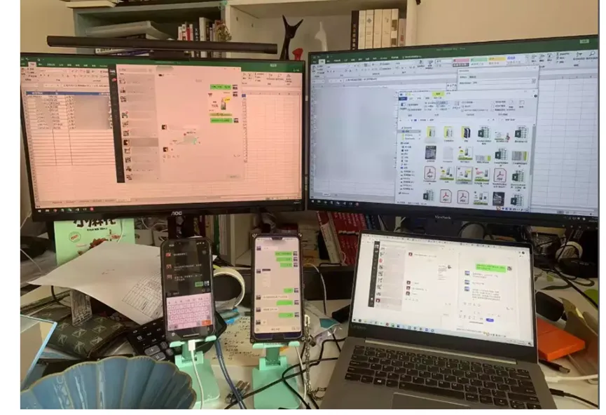 比如最近备受关注的「上海小区团长」,他们典型的工作状态,就是回复各个微信群的消息,同时做各种 Excel 表格、统计表格。