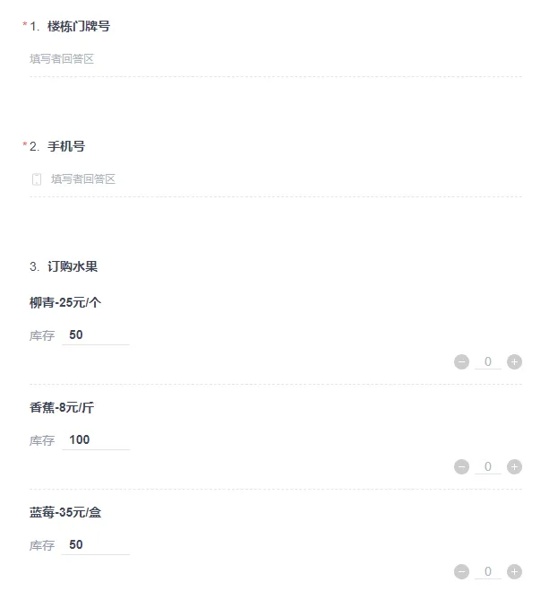 如果我们提前设置好表单,大家可以在线输入门牌号码、电话号码、每一款物资的数量,填完之后提交,后台会直接生成 Excel 表格,非常方便统计。