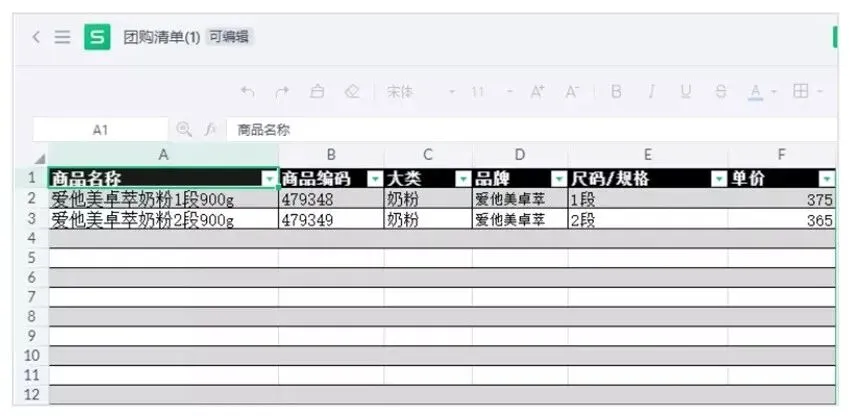 模板链接:【金山文档】 团购清单
