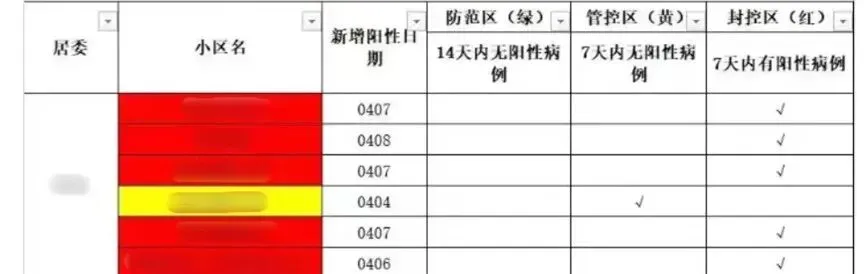 还有哪些地区封控了?这些区有哪些小区?每个小区是什么样的情况?也可以用数据透视表来统计,就好像下图一样,一秒钟就可以给出结果。