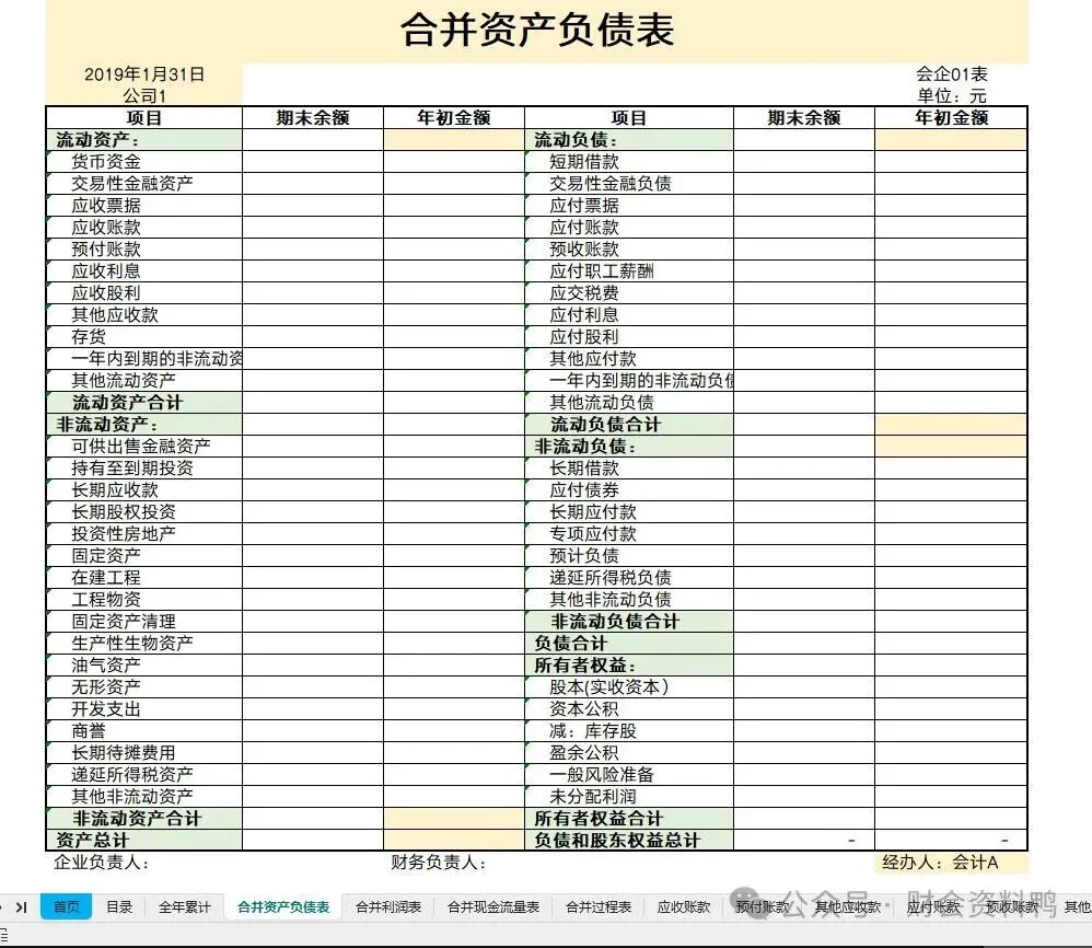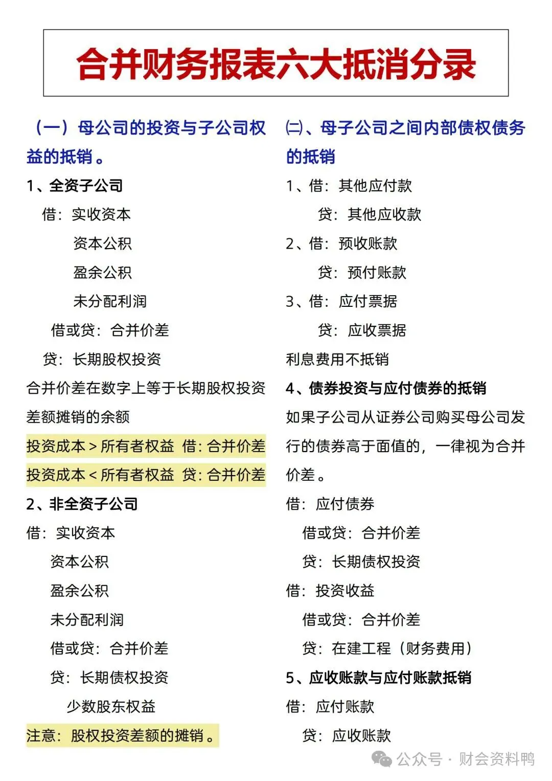 分享:合并财务报表会计分录(带合并财务报表模板)想学习的速存!升职加薪必备!