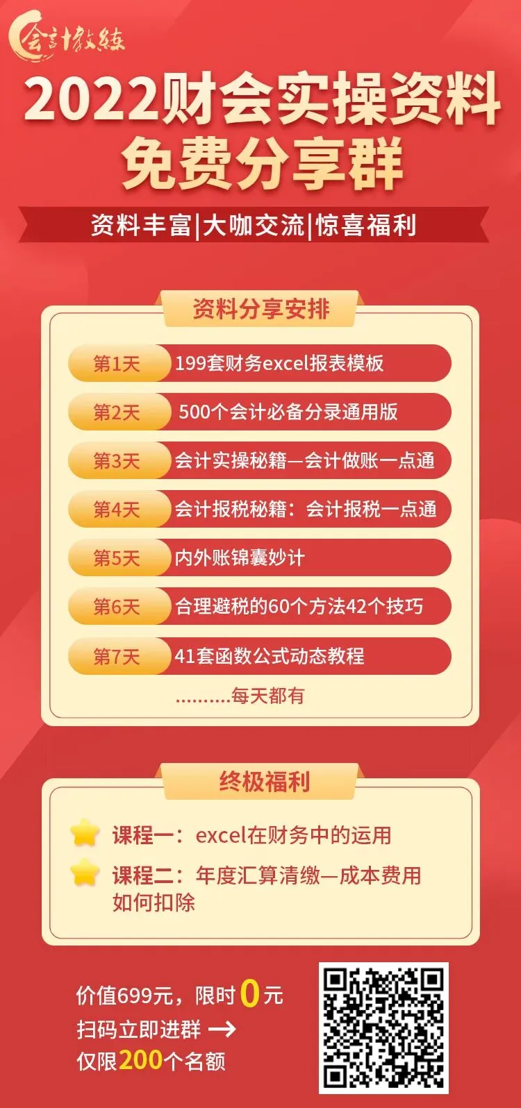 那一定不要错过这个《2022财会实操资料免费分享站》,从 自带公式的Excel报表模板、会计分录、内外账做账攻略 到 合理避税的方法与技巧,海量实操资料,每天不间断分享,更有终极惊喜 课程福利!