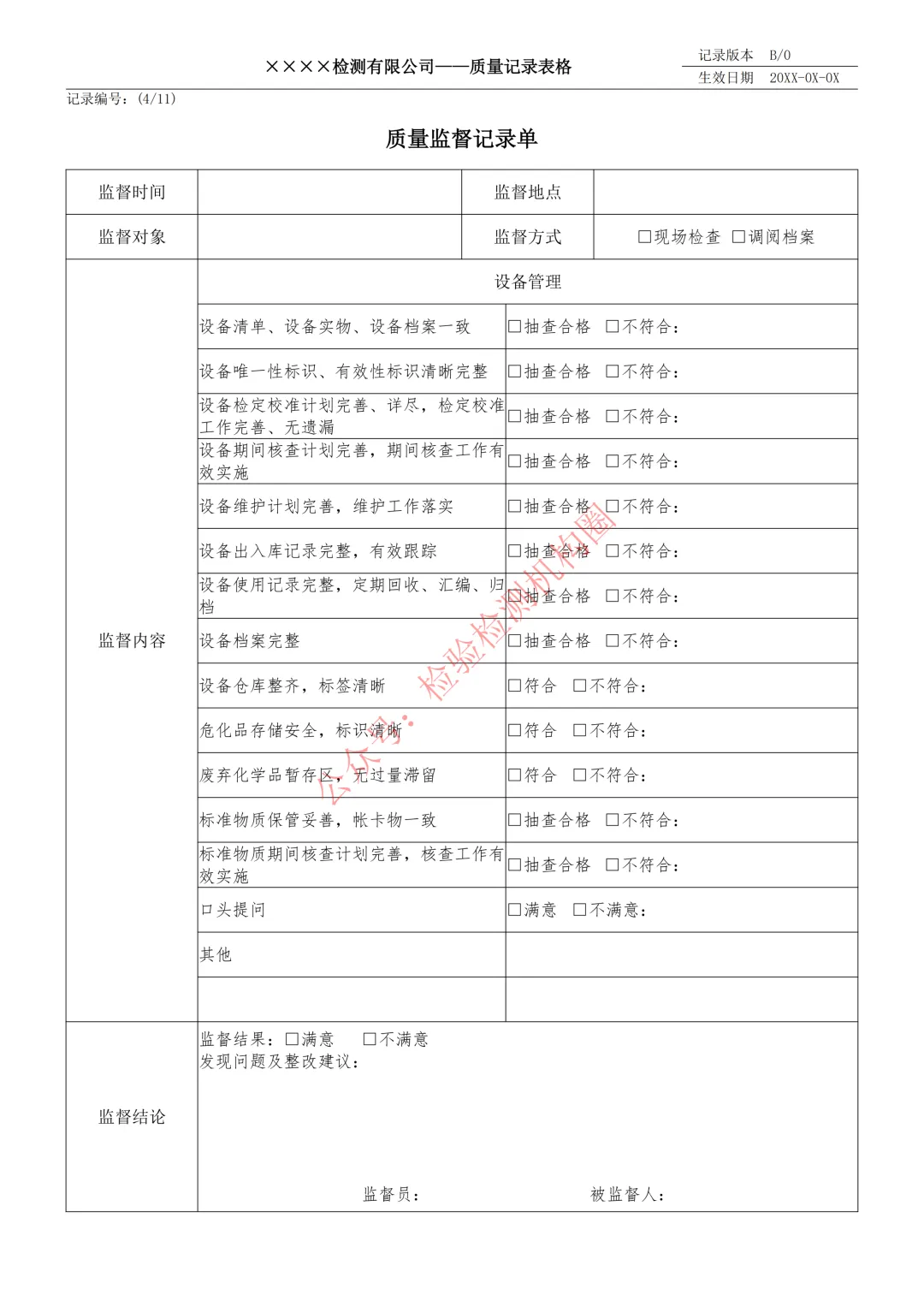 检验检测的核心是质量,而质量监督是守住质量底线的关键环节!从参数方法执行、实验室内务,到数据报告、设备管理,每一个监督环节都需要标准化、可追溯的记录支撑,才能让监督不流于形式,问题可整改、工作可复盘。