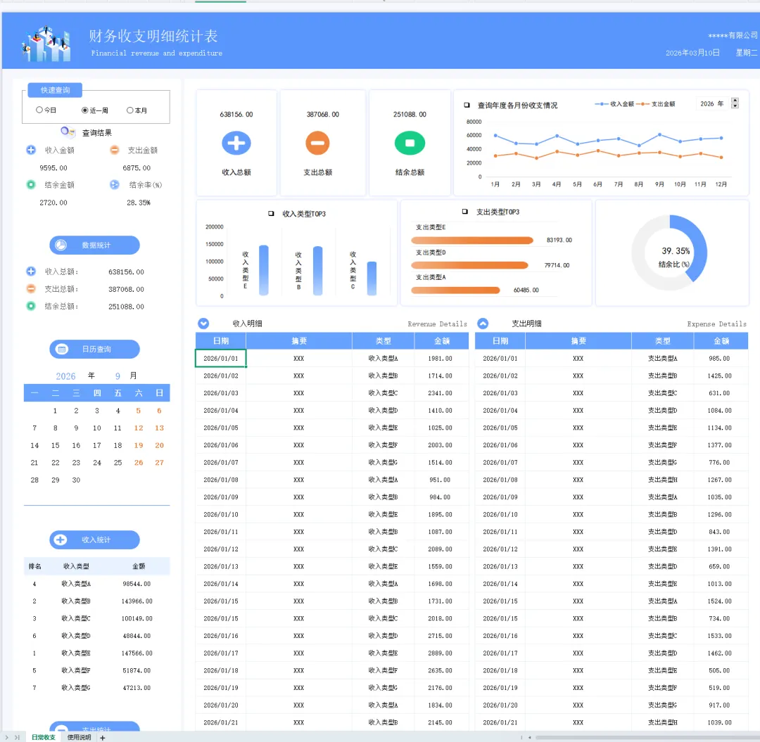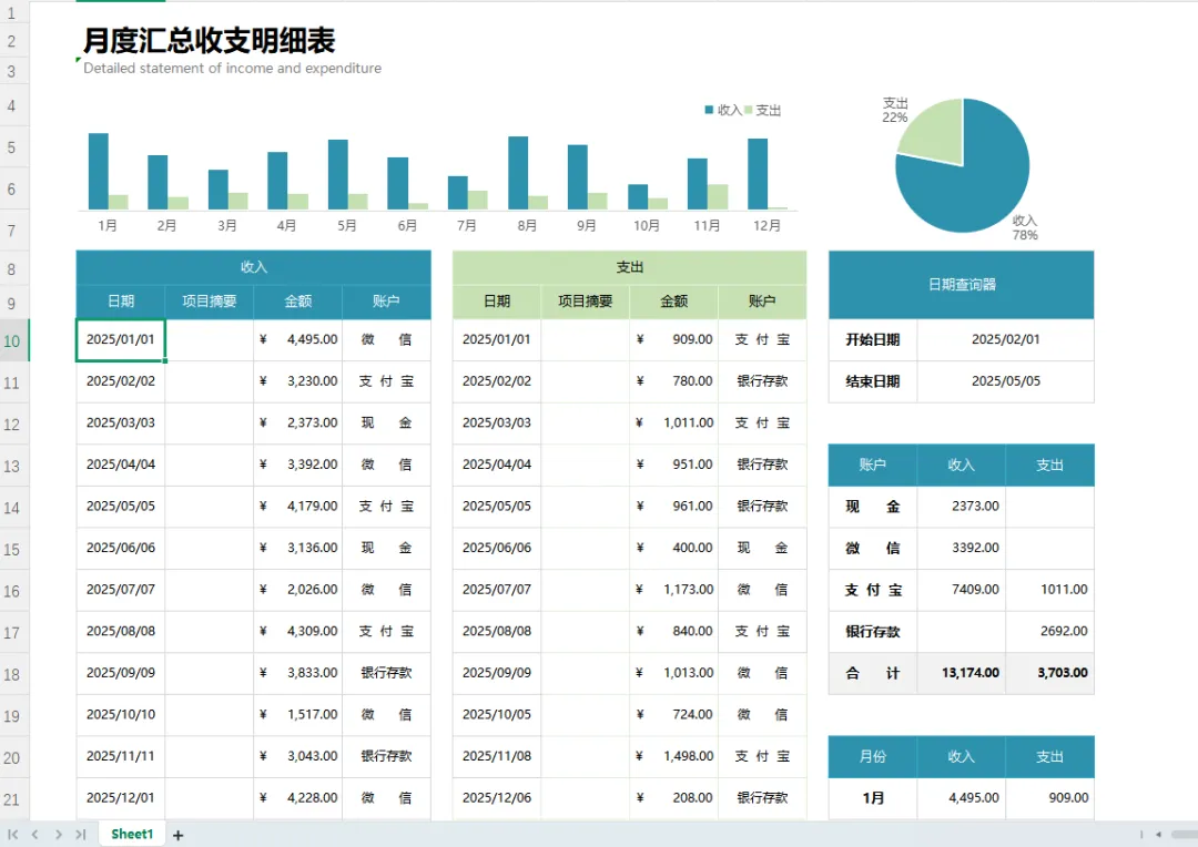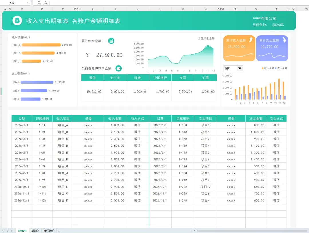 财务台账表格模板(带公式)