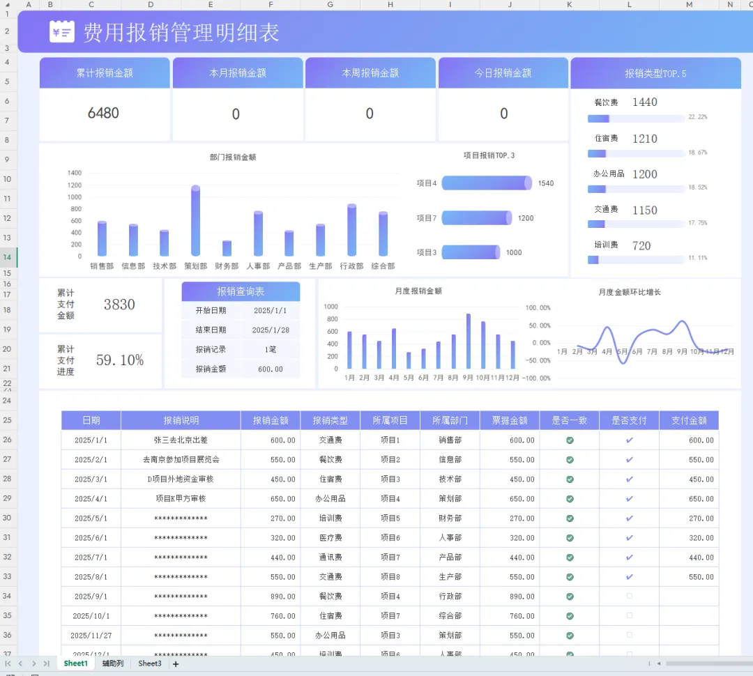 二、费用报销管理台账