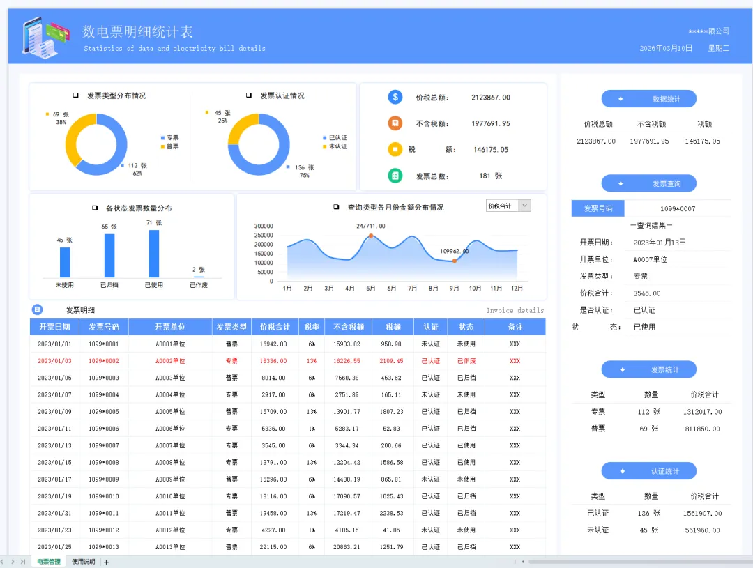 三:发票管理台账