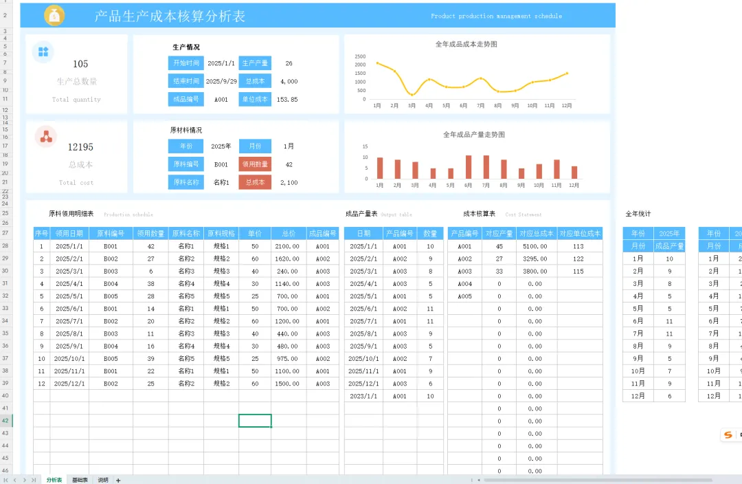 3、成本核算表全公式自动计算。
