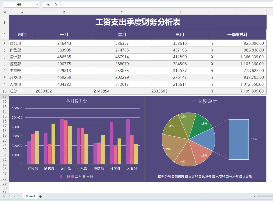 工资支出季度财务分析表