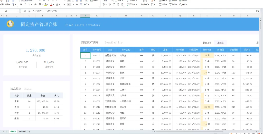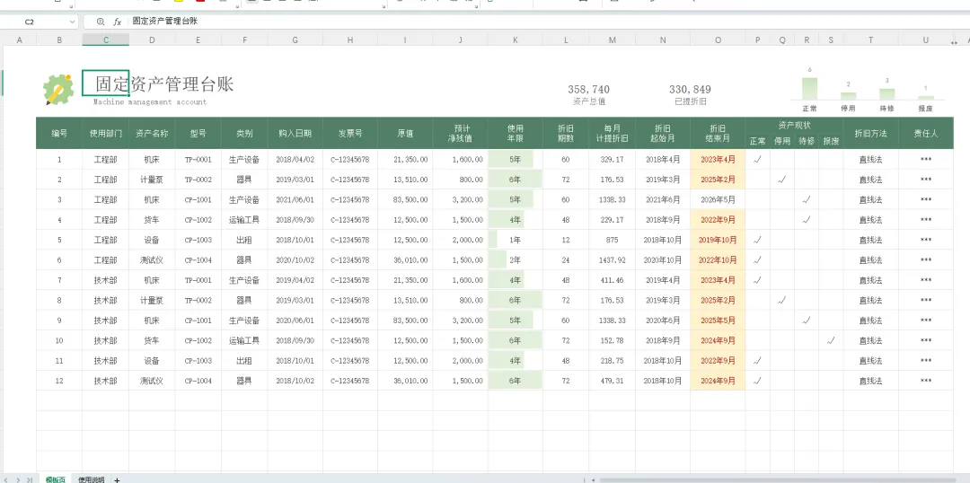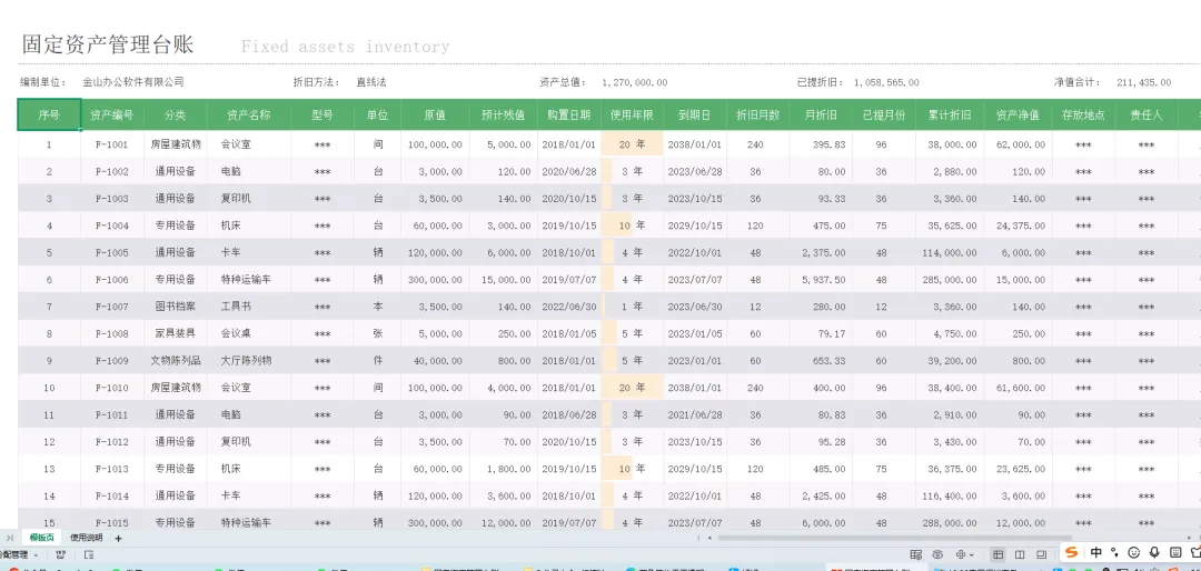 发现一套实用的固定资产管理表格模板,套用,一键生成固定资产管理台账
