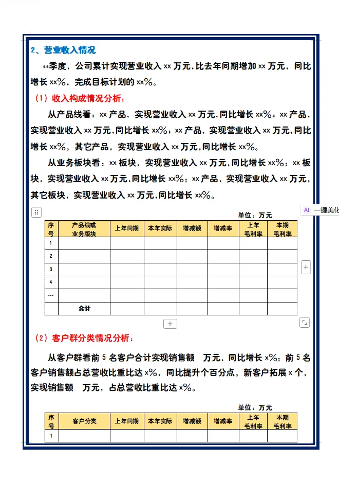 季度财务分析表格模板(带公式)与季度财务分析报告模板