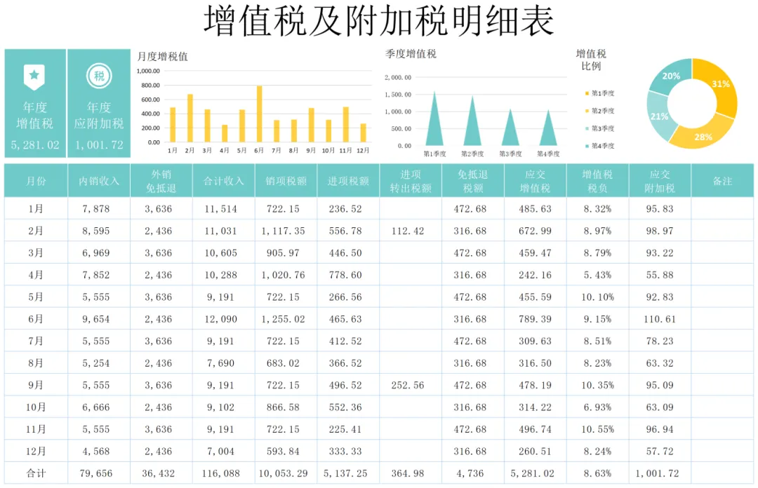 今天分享增值税计算表格及明细表,不想把时间浪费在做表上,想快速算出结果的财务会计小伙伴,可以把增值税计算表格及明细表下载下来使用,一起来看看吧~