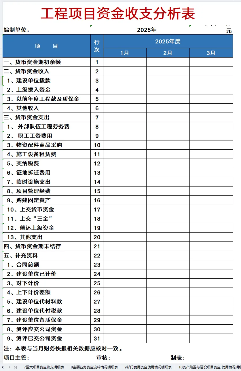 工程项目资金收支分析表