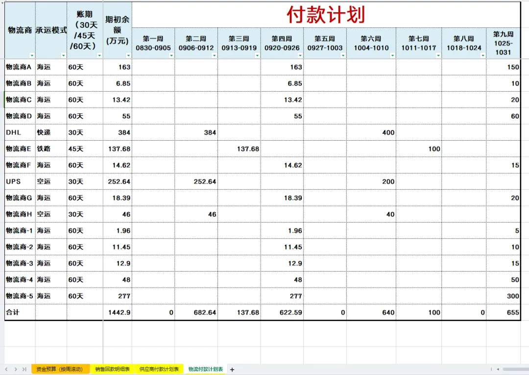 资金计划表