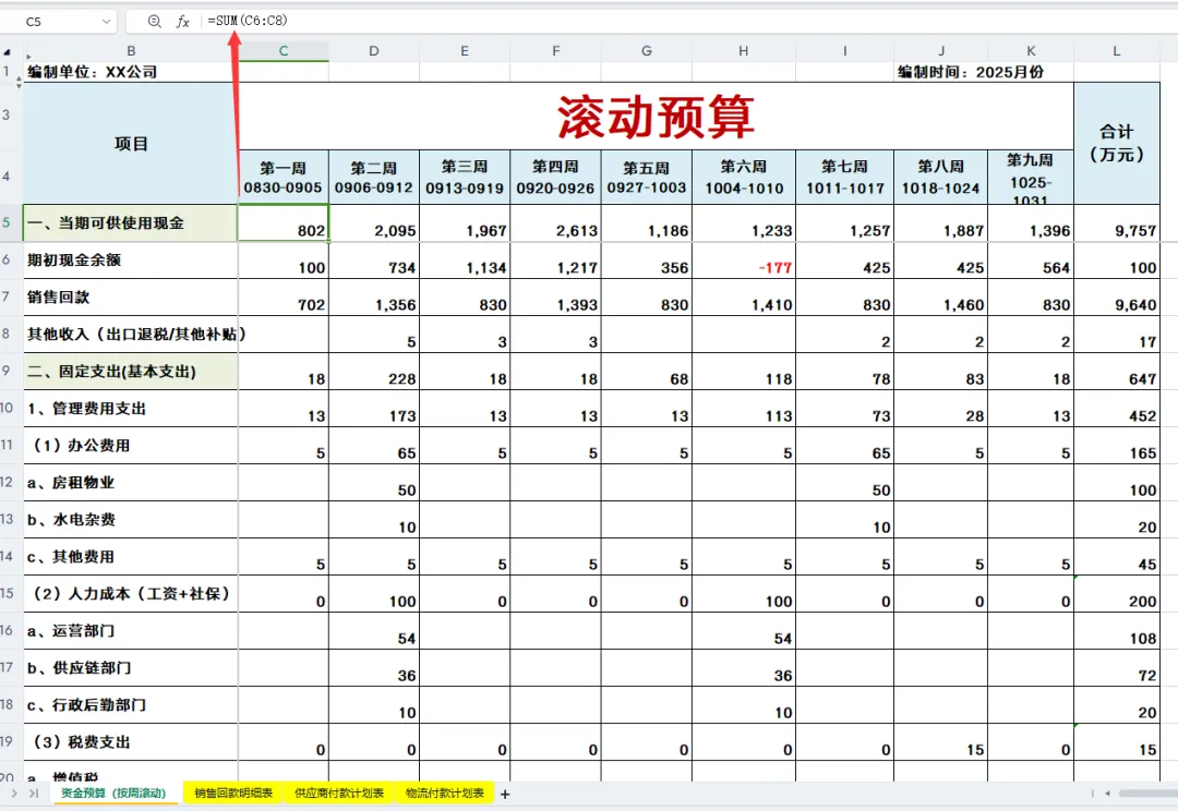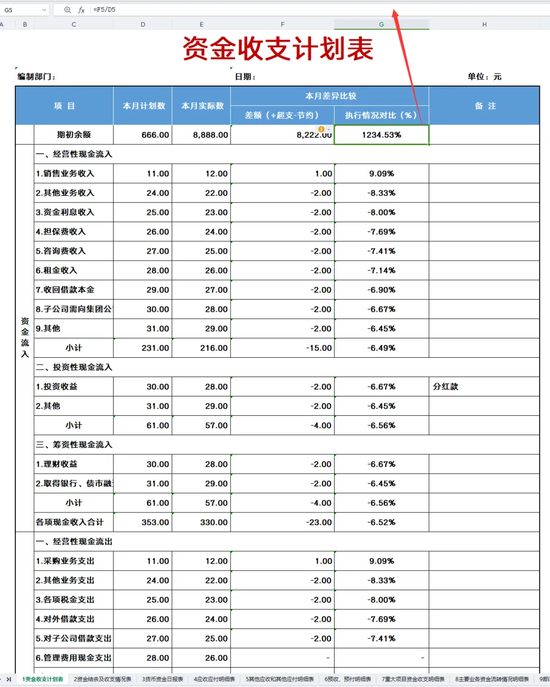 资金收支计划表