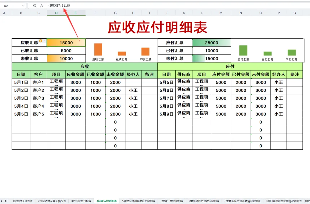 这大概是我见过最清晰的可视化资金管理报表模板,带公式,可直接套用,免费编辑!