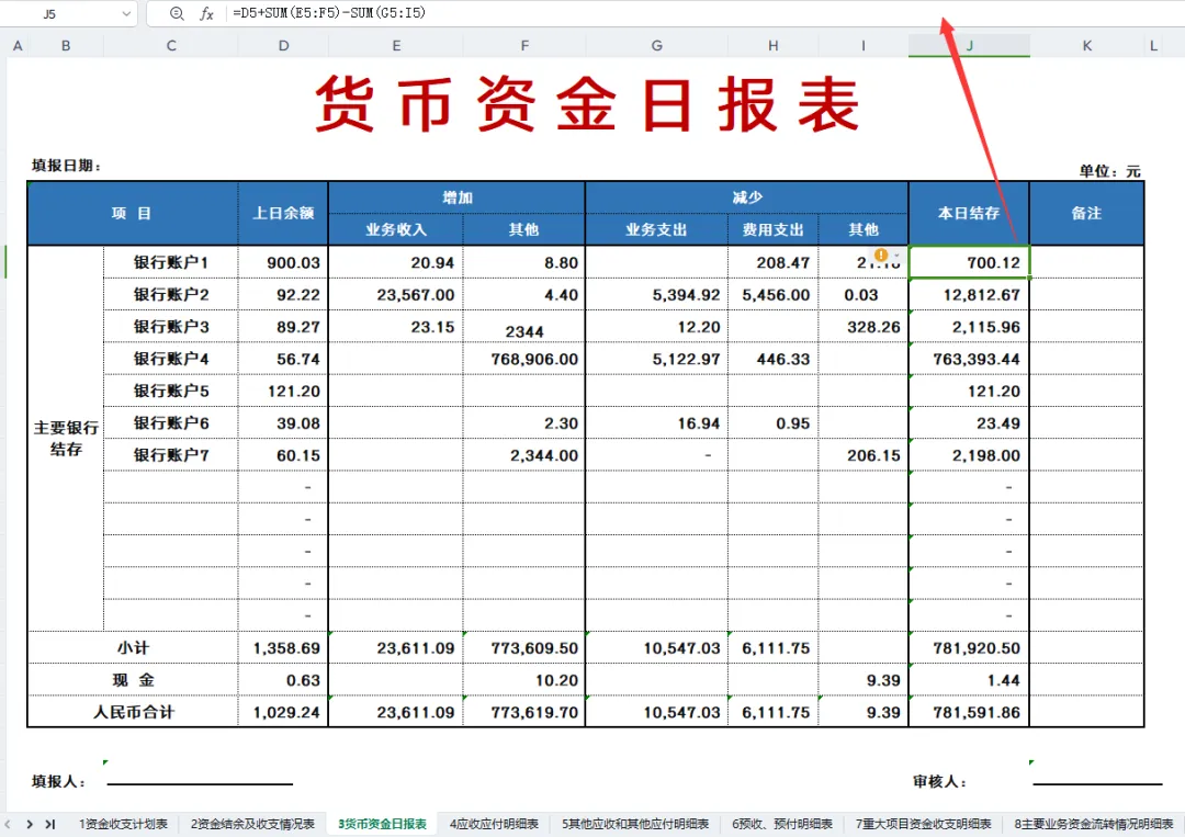 货币资金日报表
