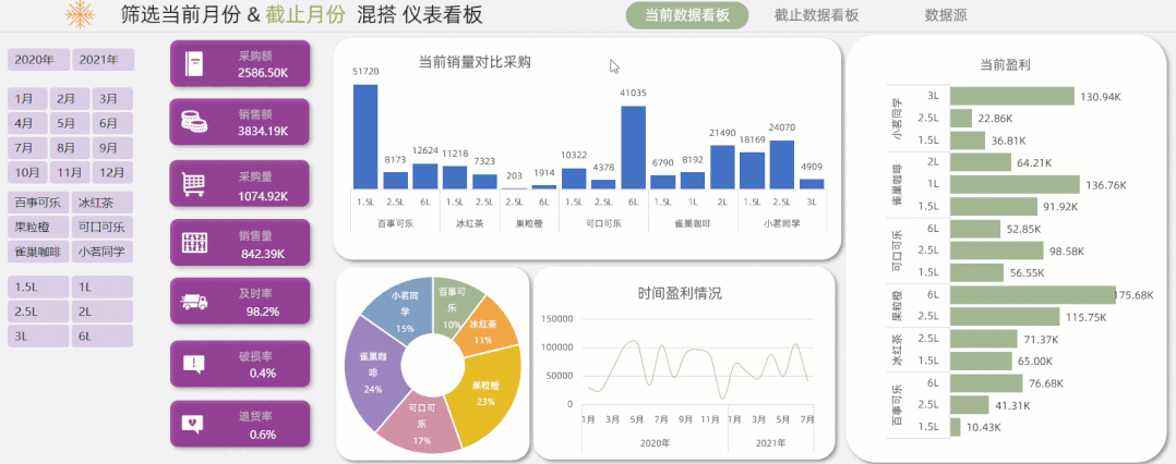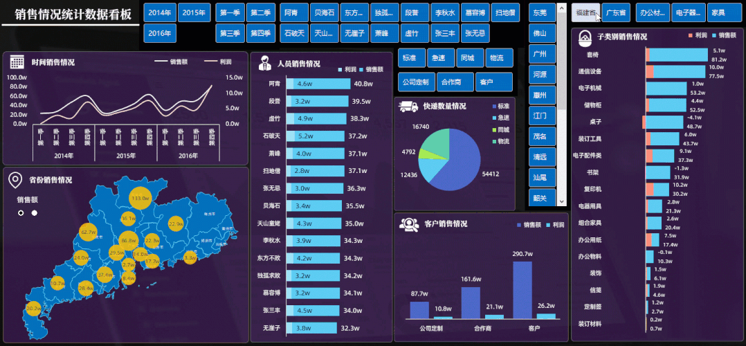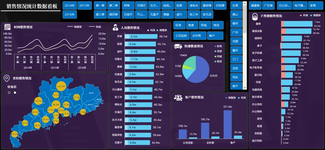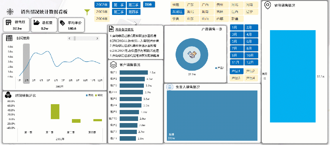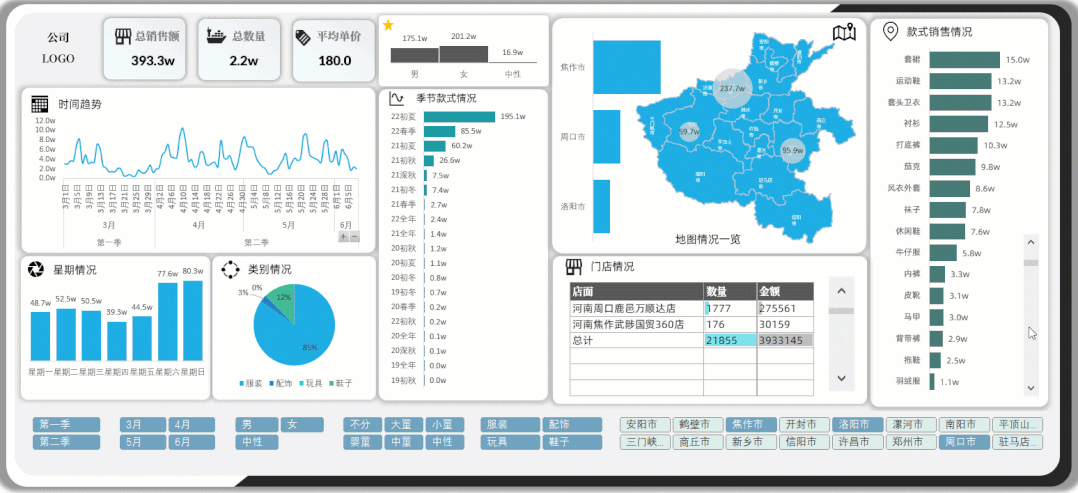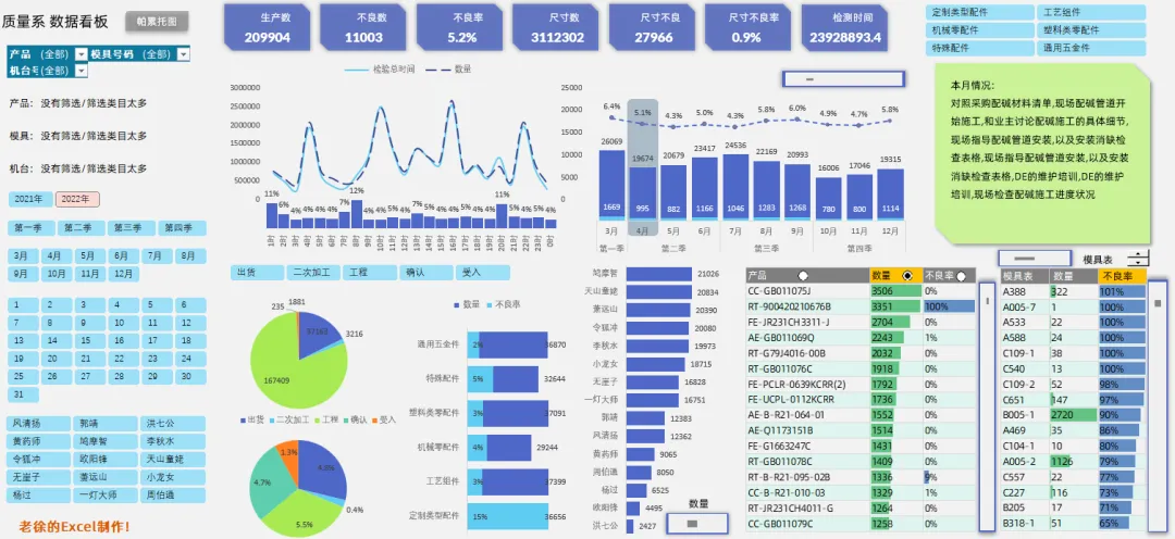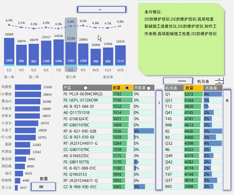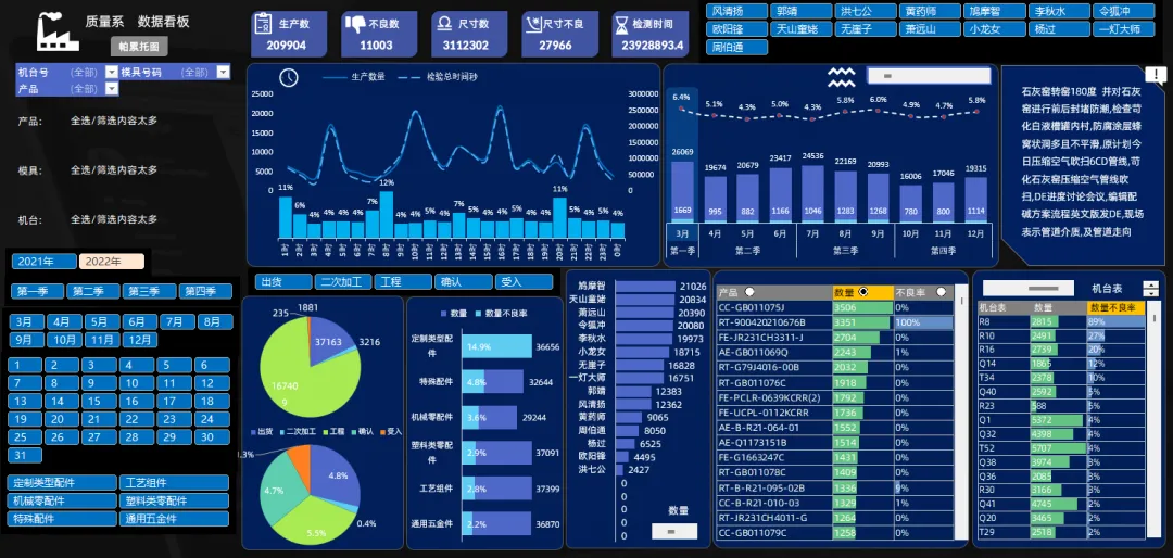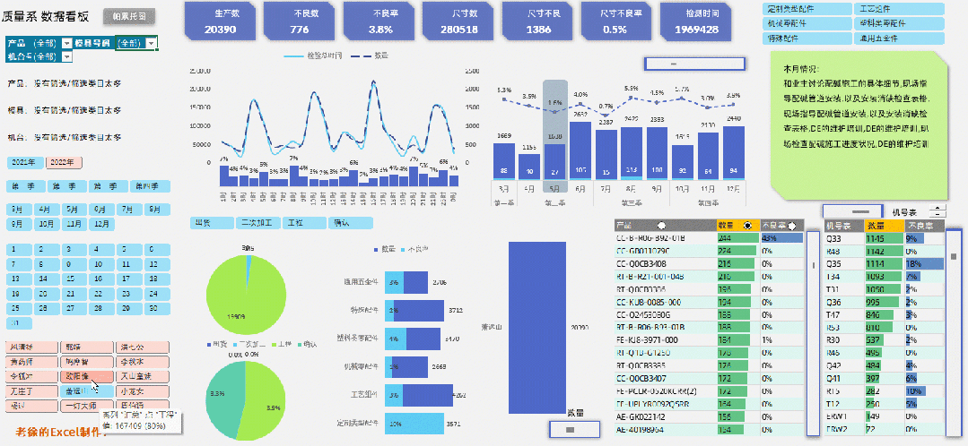 这个看板中的功能非常多,把所有类别的数据都做了筛选的汇总表达.