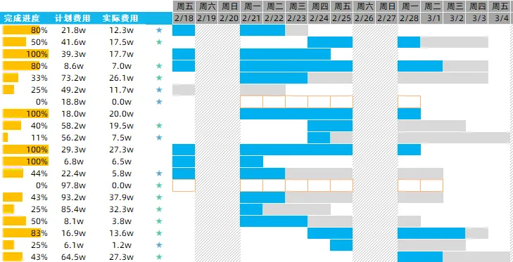 还有一个细节,上图中有"★"符号的辅助列,如果项目为100%,那么没有"★"