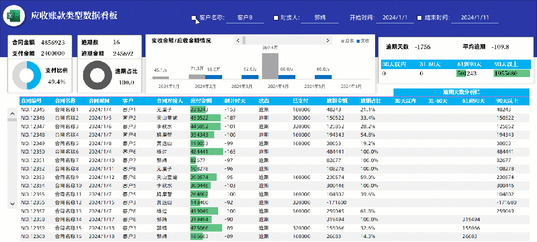 3.关于每个月的总额应收和已收可以做一个滚动的柱形图连续滚动,进行内容额度的对比.