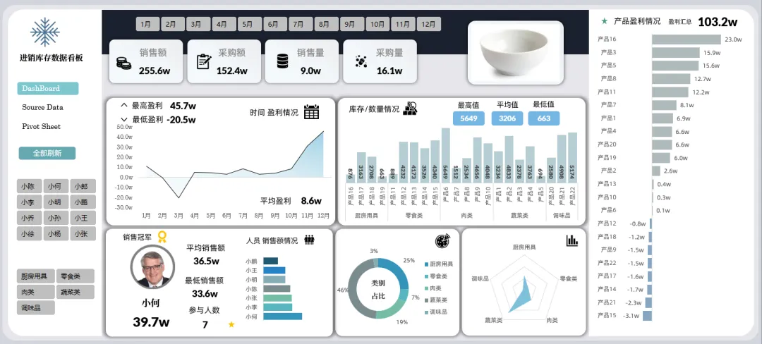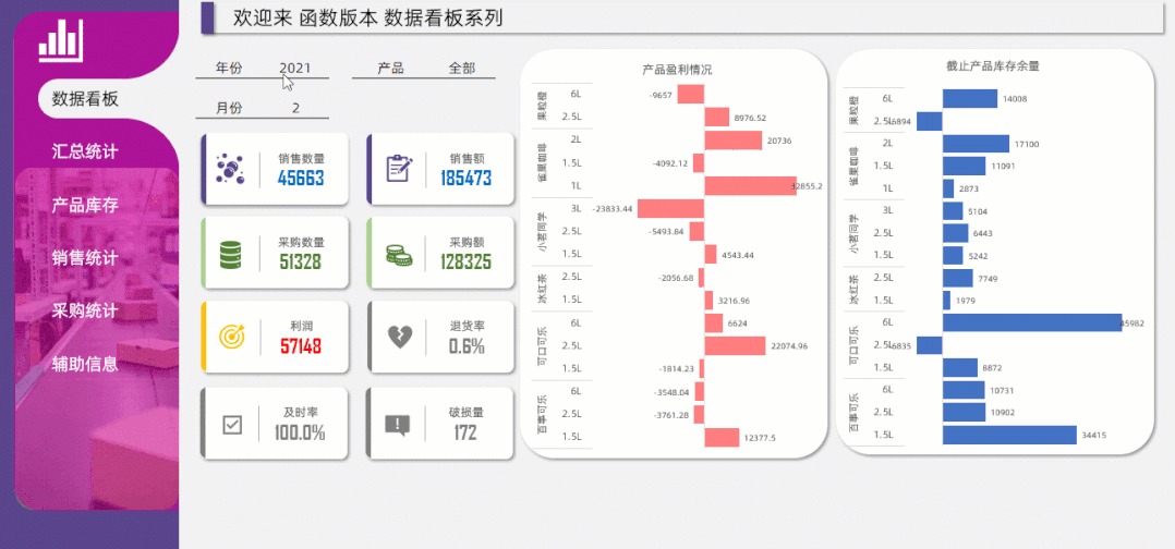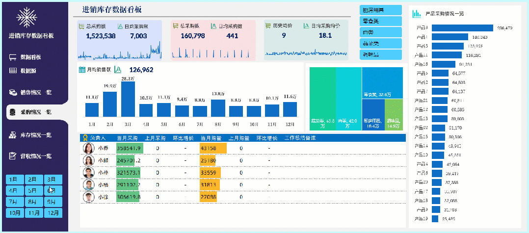 多页进销库存数据看板,