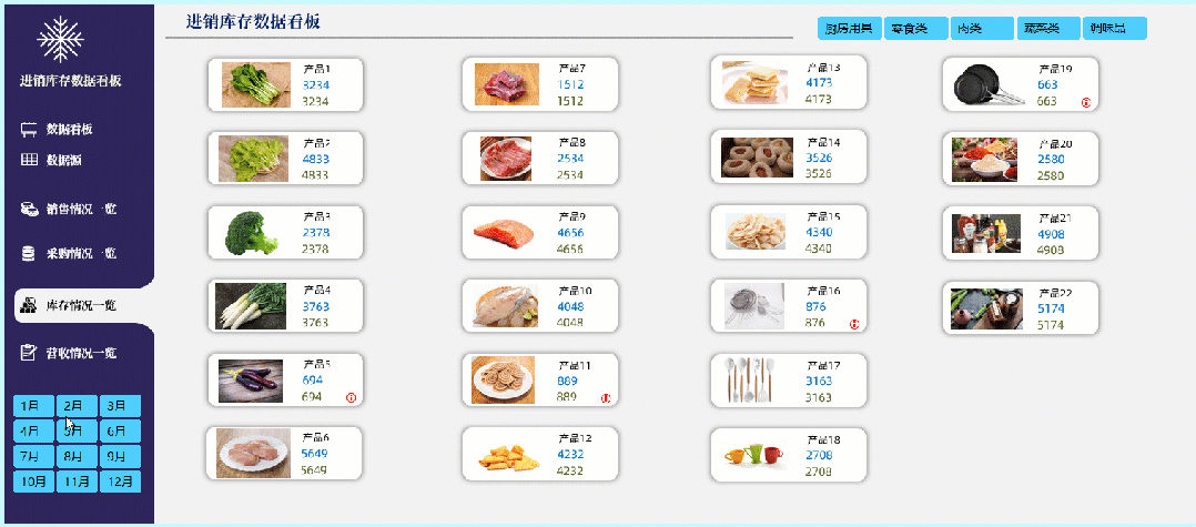 进行库存的数据看板搭配图片变化,另一个版本: