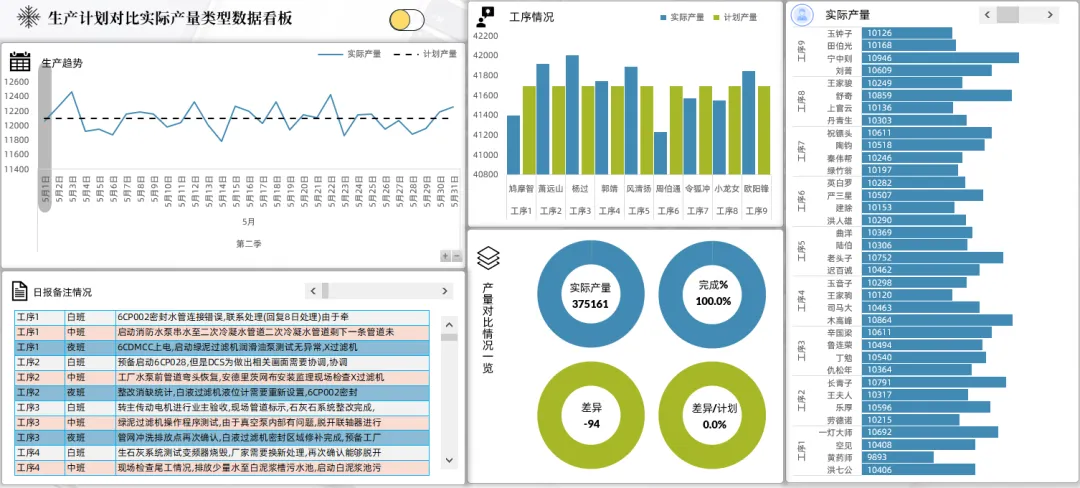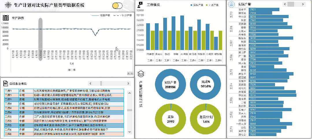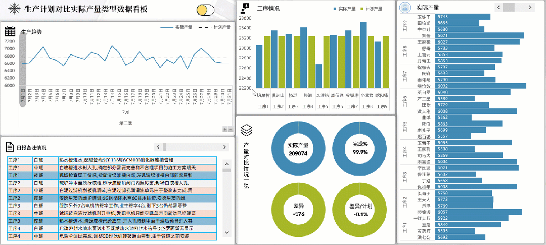 生产产量对比类型数据看板.
