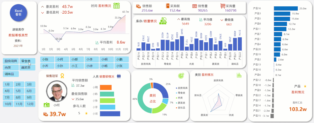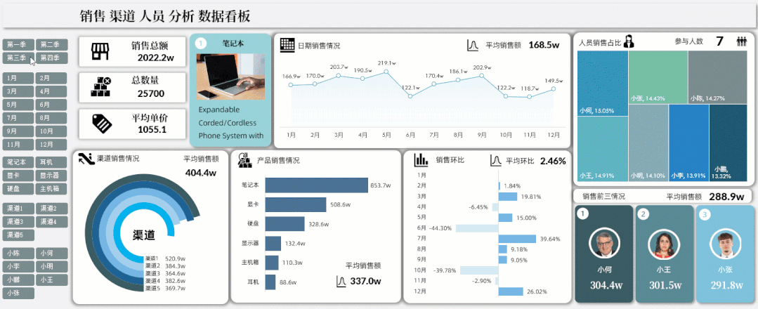 如果你想要表达,每月排名前3并且对应的人员图片想要发生变化,你就可以用到这种数据看板类型,好看!!